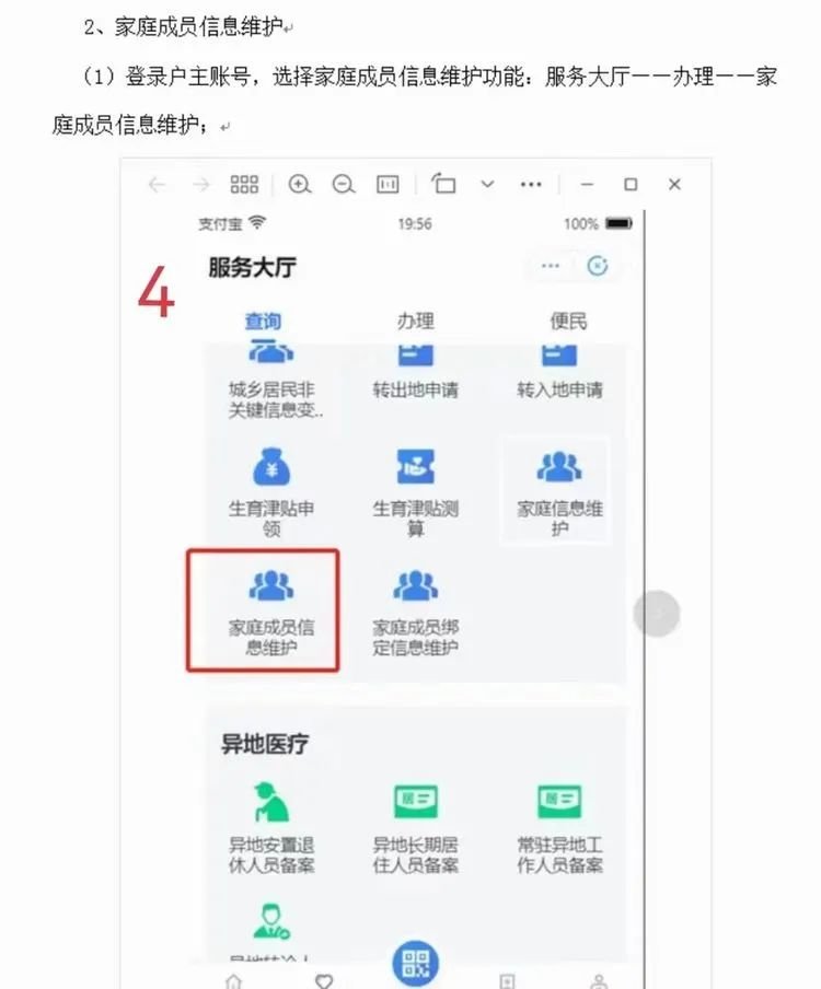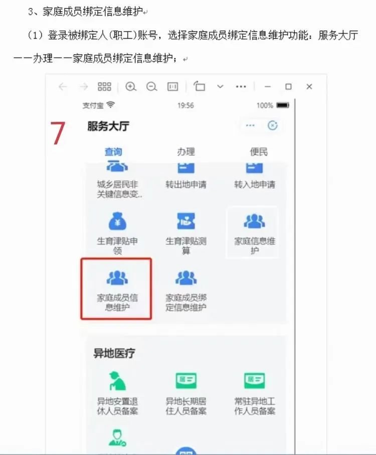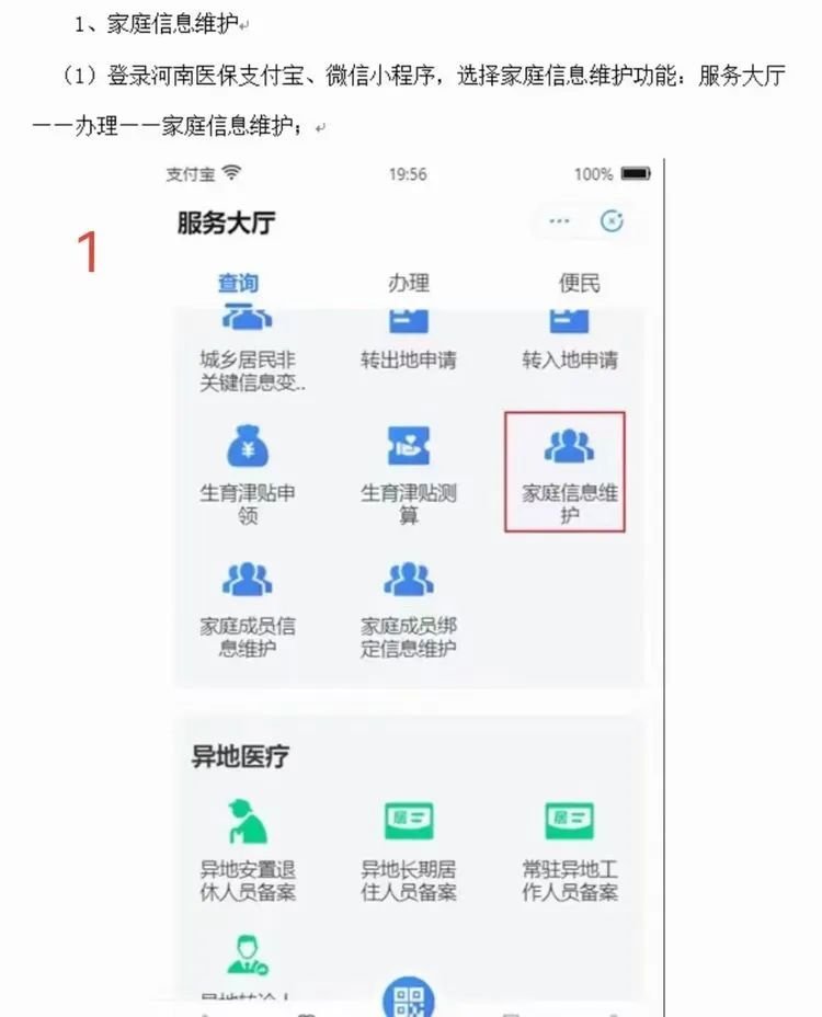 b、点击“我要办”——办理——依次进行“家庭信息维护”、“家庭成员信息维护”、“家庭成员绑定信息维护”操作即可。