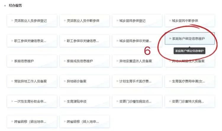 c、用户主账号登录,“服务目录”—“个人服务”—“经办服务”—“家庭账户绑定信息维护”进行家庭成员一对一绑定。