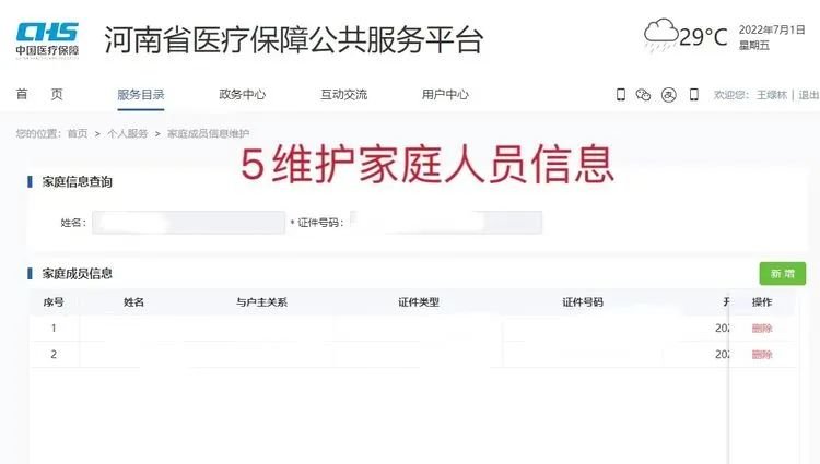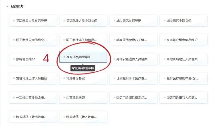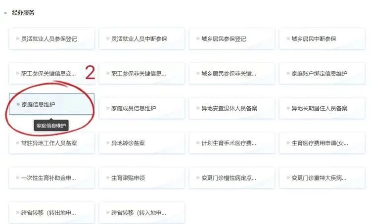 b、用户主账号登录,“服务目录”—“个人服务”—“经办服务”—维护家庭人员信息。