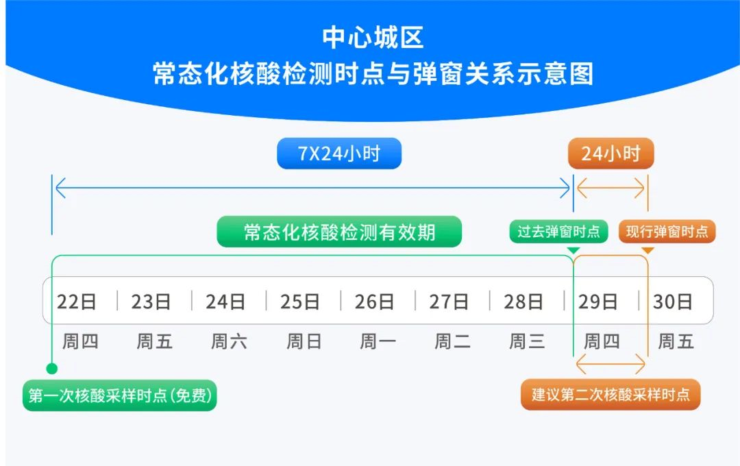 比如,你是在本周四上午9时完成了一次核酸采样,如果接下来的7天内,也就是7✖24小时内,你都不会被弹窗。