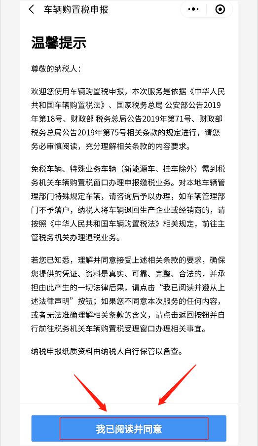 第三步:选择“车辆购置税纳税”,阅读办理须知,并同意办理须知。