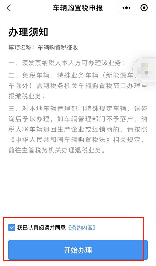 第三步:选择“车辆购置税纳税”,阅读办理须知,并同意办理须知。