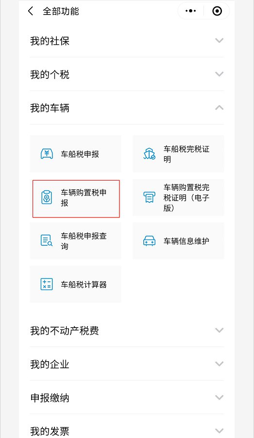 第二步:点开“我的车辆”,然后点击“车辆购置税申报”。