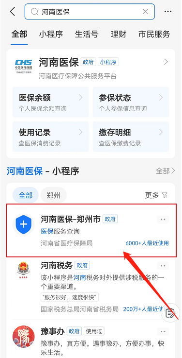 2.打开“河南医保”小程序;