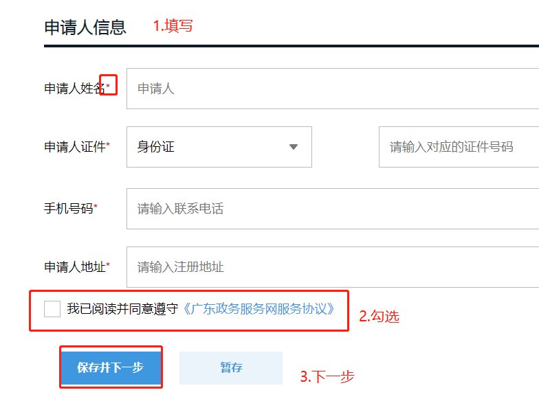 在清远市人民政府门户网站搜索平台点击【在线办理】进入办理平台后,按照提示进行登录。登录后,点击【立即办理】进入申办流程页面。按照要求填写信息,点击【保存并下一步】,按要求上传材料即可。