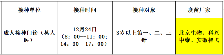 12月24日,佛冈县开放新冠病毒疫苗接种门诊有: