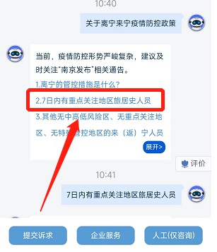 4、点击“关于离宁来宁疫情防控政策”