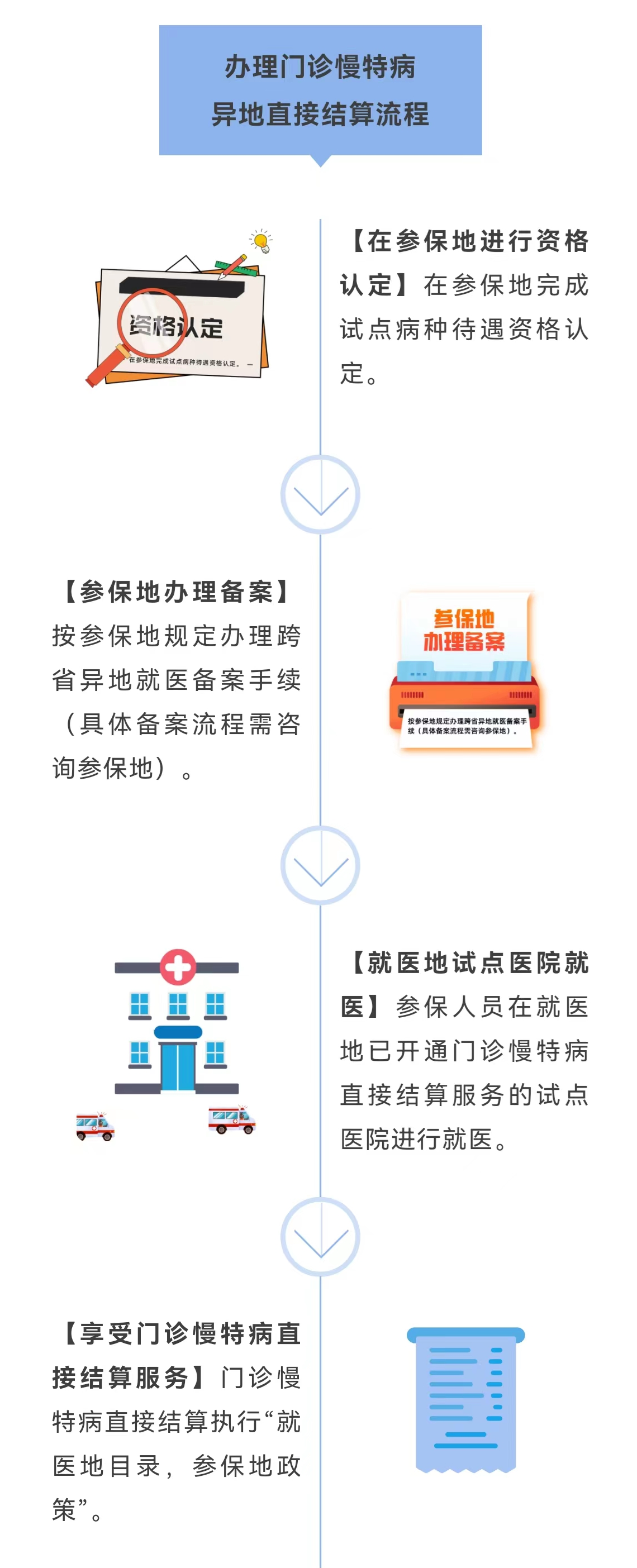 答:申请人在参保地通过上述5种试点门诊慢特病待遇资格认定、且办理跨省异地就医备案后,可凭医保电子凭证或社保卡到备案就医地已开通相关门诊慢特病病种联网结算的定点医疗机构就医并联网直接结算。