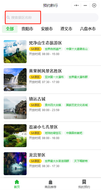 2.在预约板块,可以通过景区级别、景区所属地、搜索景区名称来找到你想去的景区;