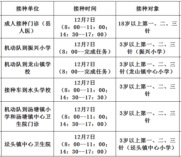 12月7日,佛冈县开放新冠病毒疫苗接种门诊有: