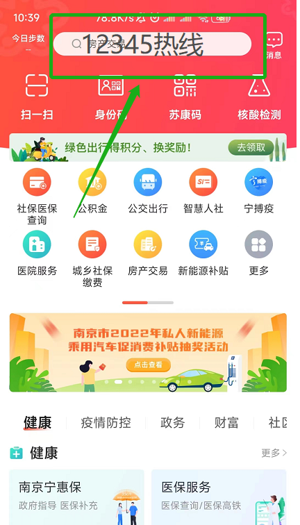2、打开“我的南京”APP,搜索12345热线