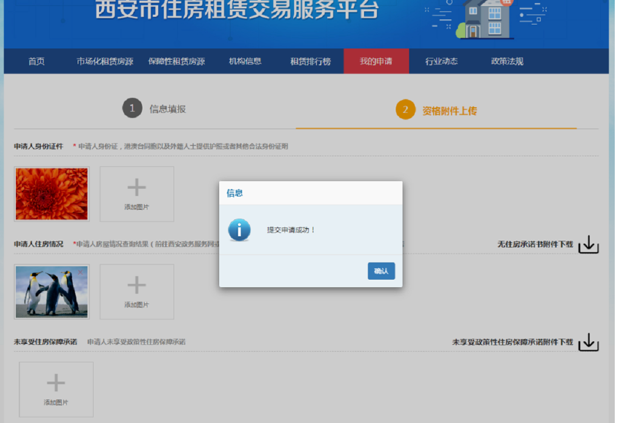 2、上传相关资料。上传的本人身份证件、房屋情况查询结果等图片资料必须清晰、保持中字头向上、图片格式不宜过大。