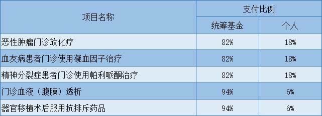 参保职工门诊进行特殊病治疗的费用(应符合西安市门诊特殊病种政策规定和特殊病种适应症条件),其中器官移植术后服抗排斥药和门诊治疗肾透析,统筹基金负担94%、个人负担6%;其它病种统筹基金负担82%、个人负担18%。