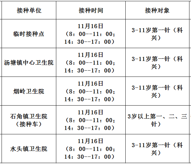 注意:临时接种点接种对象为3岁以上人群的第一针、第二针和第三针。请各位市民凭健康码绿码,戴好口罩进场。