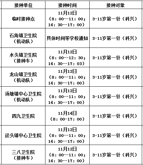 11月12日新冠疫苗接种安排