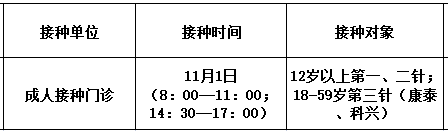 11月1日,佛冈县开放新冠病毒疫苗接种门诊有:
