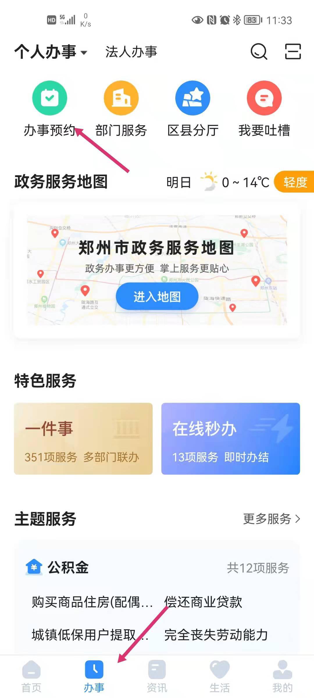 1. 用户打开“郑好办”APP,点击“办事预约”页面,选择“社保预约”。