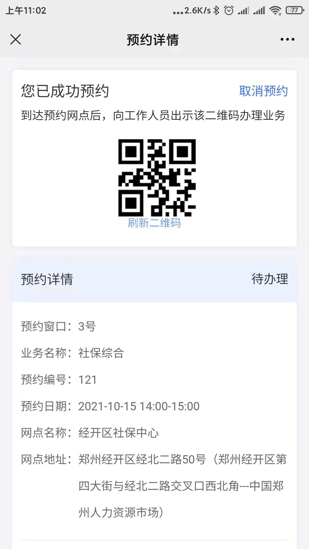 8. 将预约二维码展示给柜台办理人员即可办理。