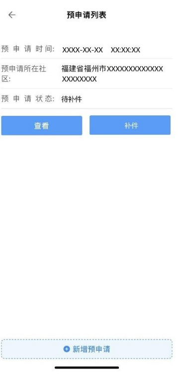选择所在地区后,点击“资格申请”菜单,进入预申请列表,新增预申请。