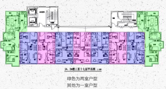 PS:绿色为两室户型,其他为一室户型
