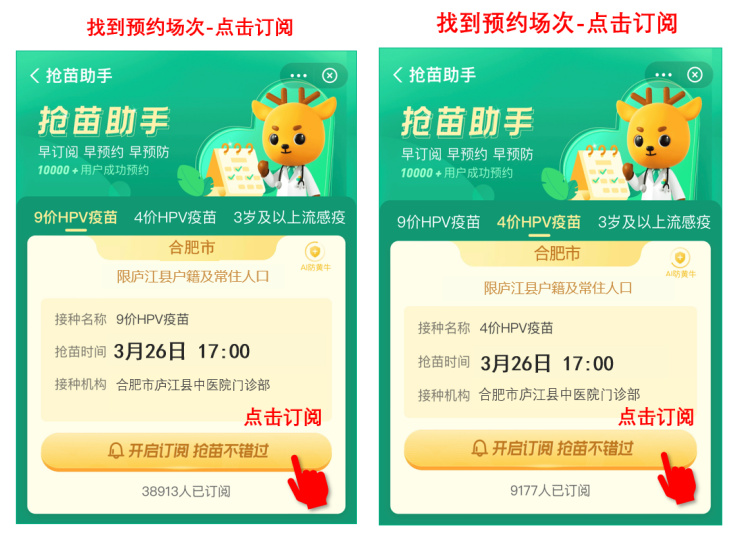 庐江县中医院4价/9价HPV疫苗,将于10月1日下午2:00,在医鹿APP平台开放线上预约,其中4价88人份、9价32人份,限庐江县户籍和常住居民预约。