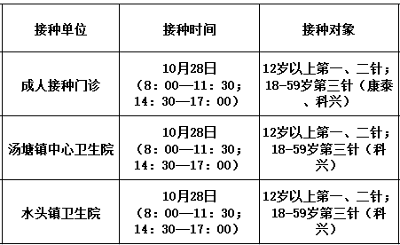 10月28日,佛冈县开放新冠病毒疫苗接种门诊有: