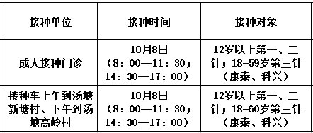 10月8日,佛冈县开放新冠病毒疫苗接种门诊有: