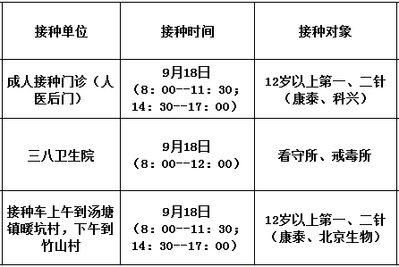 9月18日,佛冈县开放新冠病毒疫苗接种门诊有: