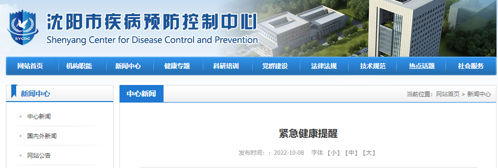 沈阳市疾病预防控制中心紧急健康提醒