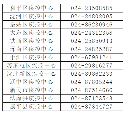沈阳市各区县(市)疾控中心联系电话: