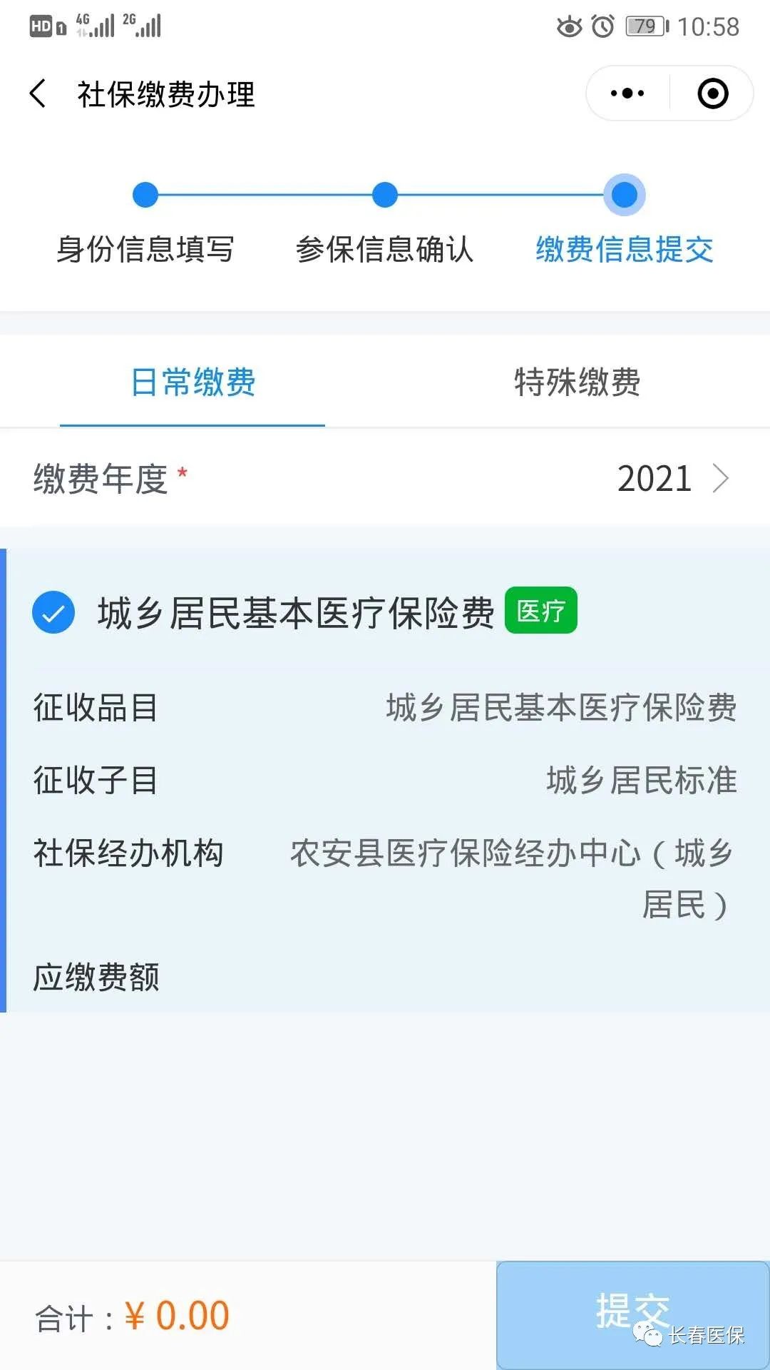也可选择缴费人的特殊缴费信息,提交并缴费: