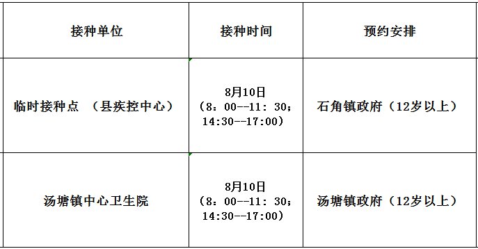 8月10日开放门诊接种信息
