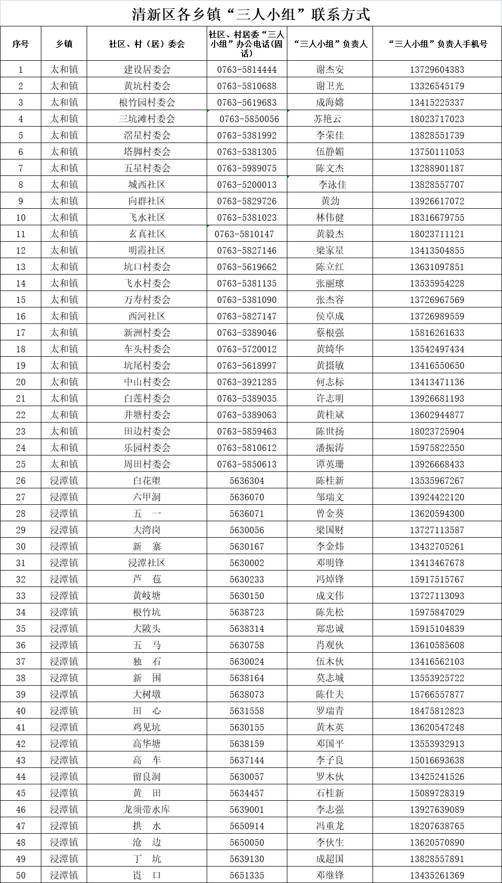 清新区三人小组联系方式 清新区第三小学电话