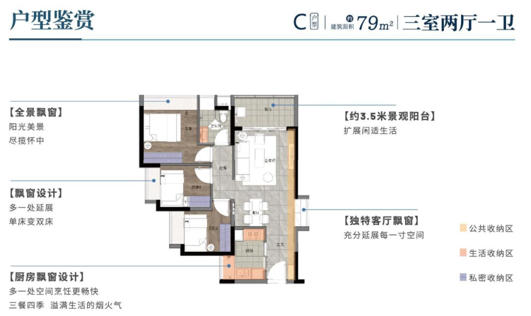 ✔ 独特客厅飘窗,充分利用每一寸空间