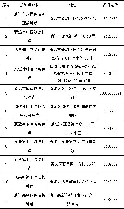 清城区8个镇街均设立新冠疫苗接种点为60岁以上人群提供接种服务。具体名单如下: