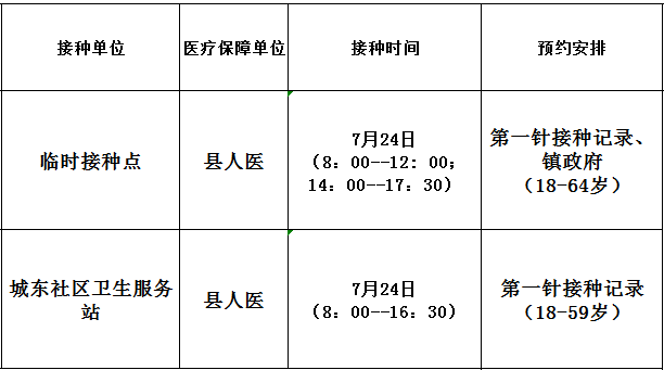 7月24日开放门诊接种信息