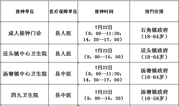 7月22日开放门诊接种信息