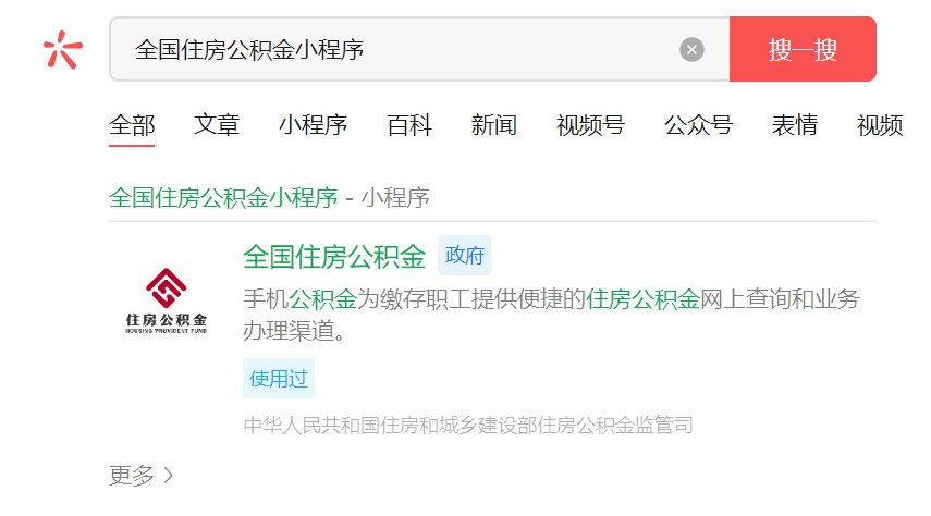 (1)全国住房公积金小程序:微信搜索全国住房公积金小程序,点击进入