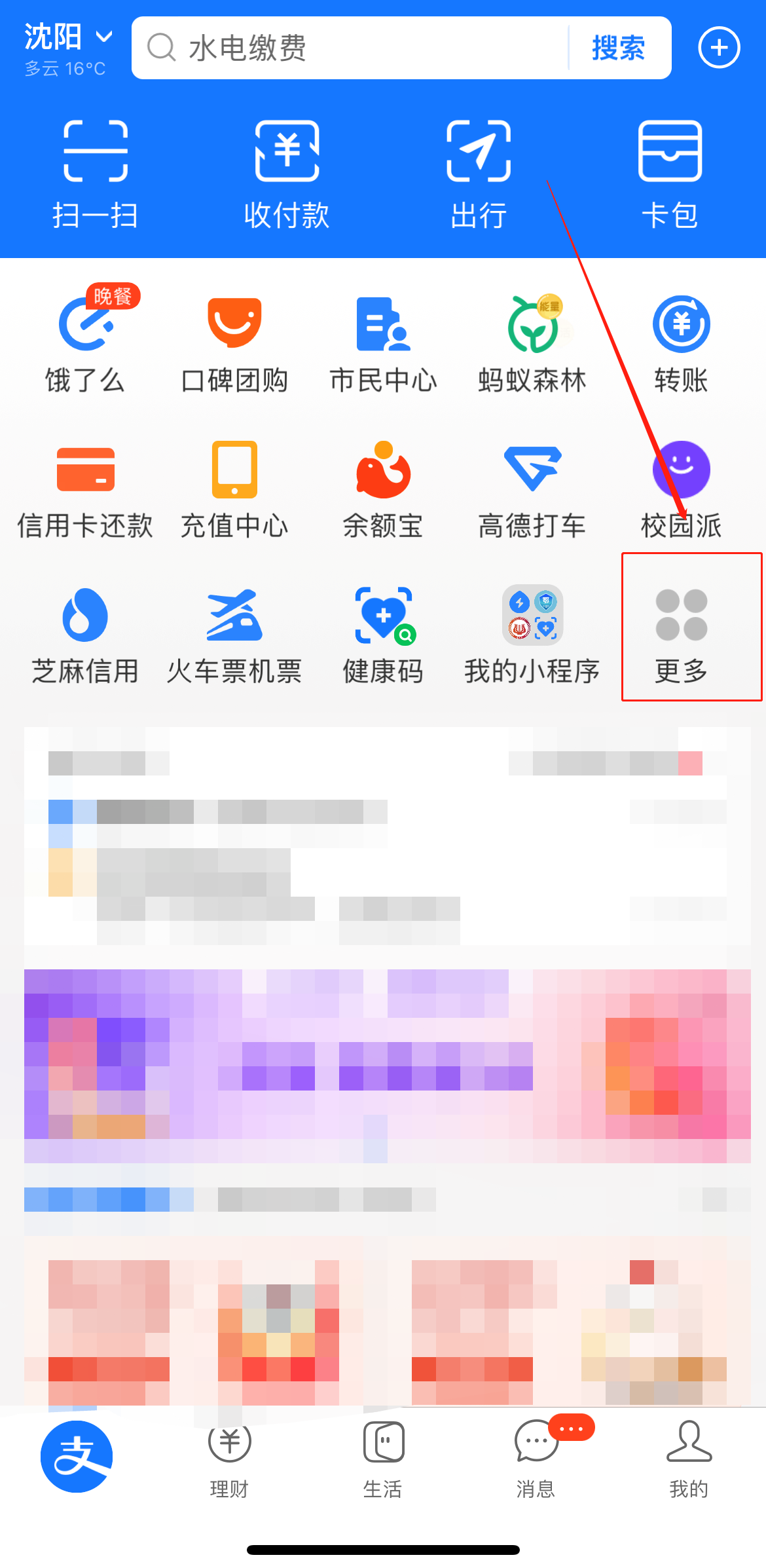 1、下载安装并打开“支付宝”APP,在首页点击“更多”→在“便民生活”板块点击“生活缴费”(首页已经显示“生活缴费”的忽略此步骤);