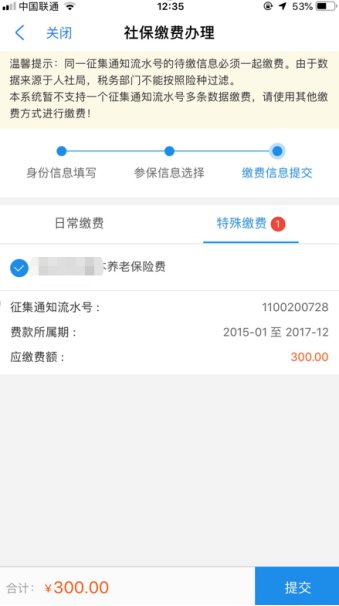也可选择缴费人的特殊缴费信息,提交并缴费: