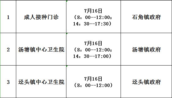 7月16日,佛冈县开放新冠病毒疫苗第一针、第二针接种,开放门诊有成人接种门诊(县人医后门)、汤塘镇中心卫生院、迳头镇中心卫生院。统一由辖区镇政府安排,市民可联系辖区镇政府、村(居)委会咨询接种情况。其中成人接种门诊可接种人群为18-64周岁人群,凭预约号接种,其余门诊暂时开放18-59周岁人群。
