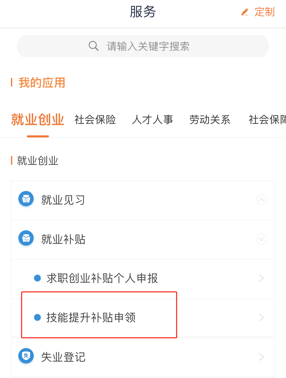 登录“江苏智慧人社”APP,通过“全部—就业补贴—技能提升补贴申领”模块申领技能提升补贴。