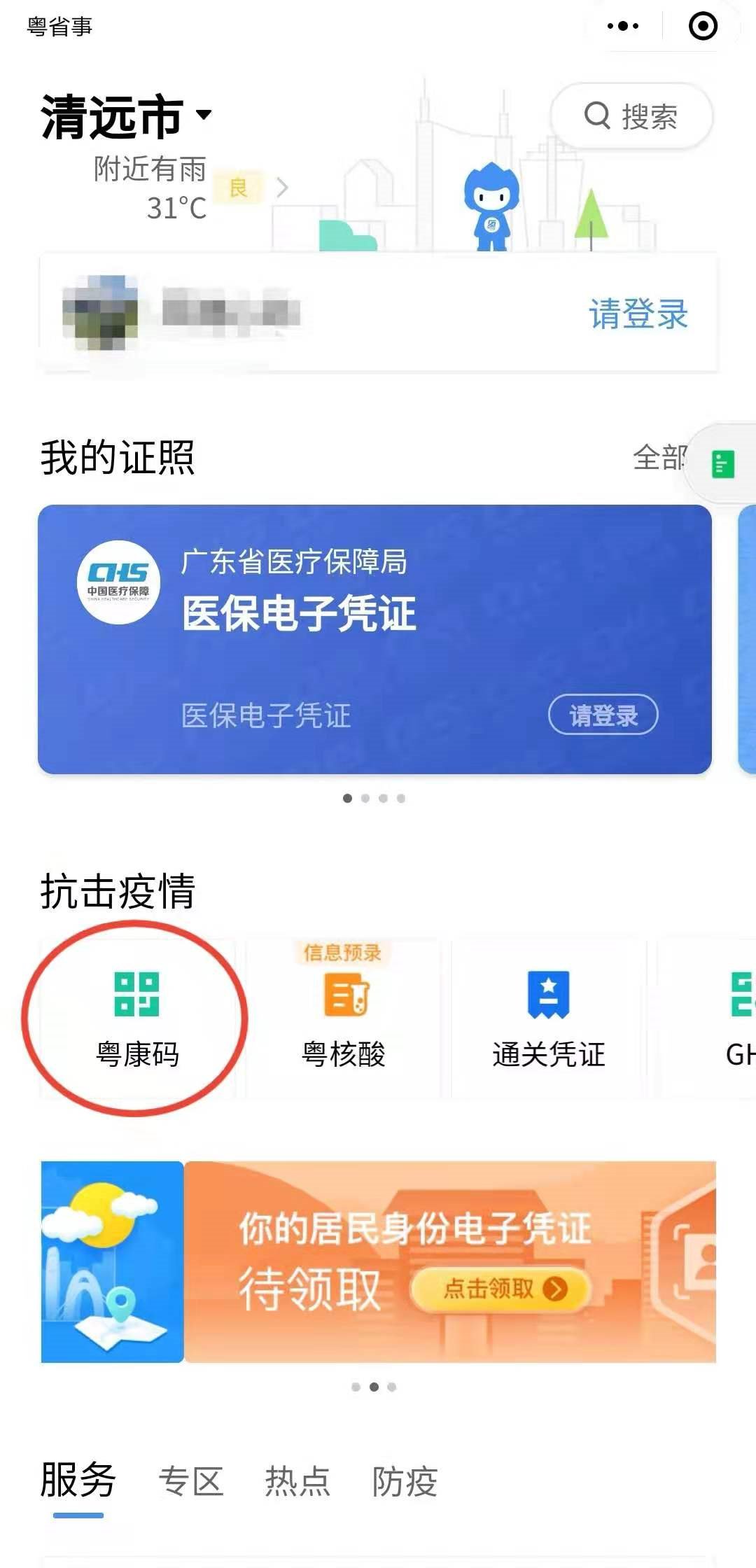 1.手机打开“粤省事”小程序