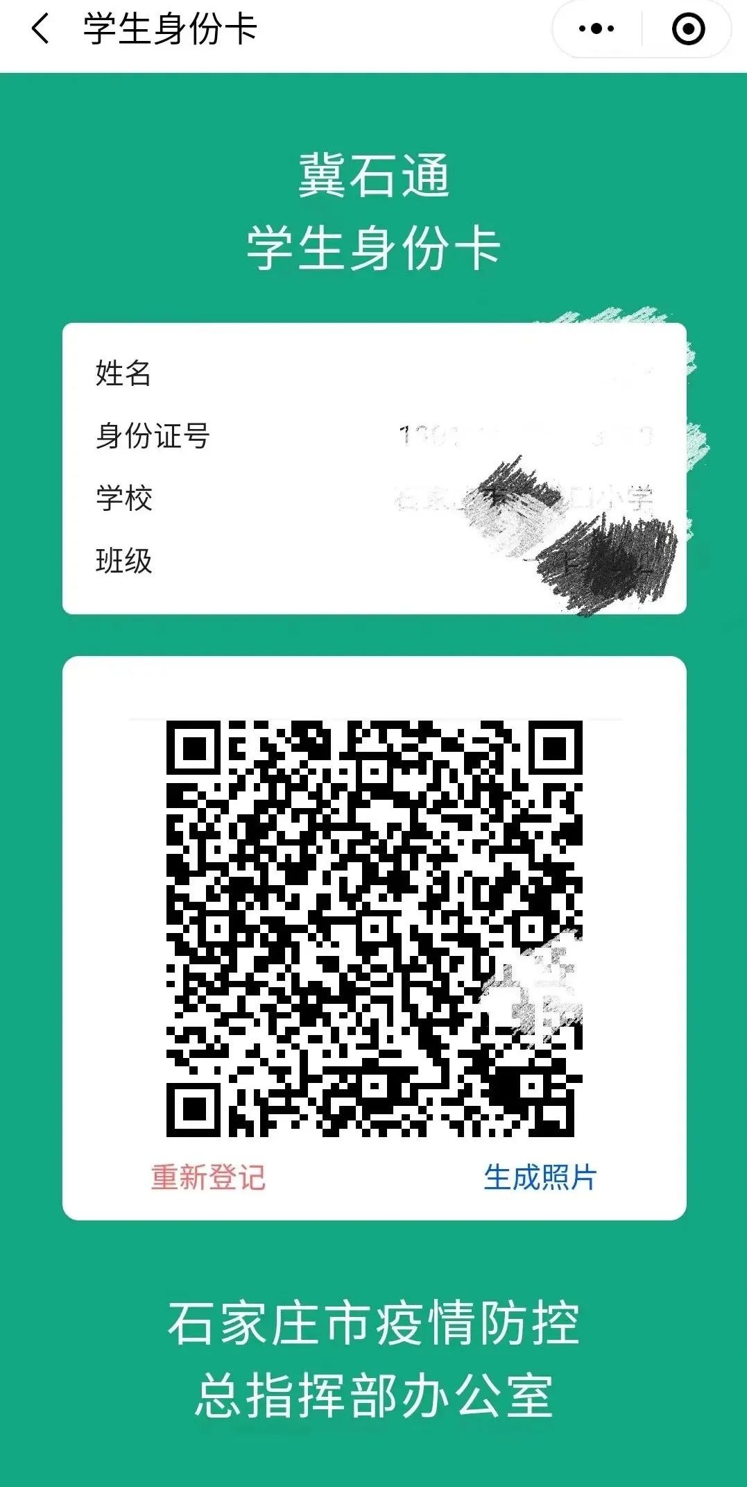四、输入儿童信息保存生成二维码或截图保存,做核酸时出示学生身份卡即可。