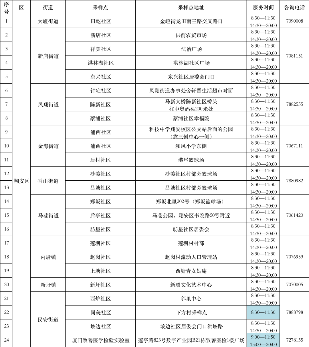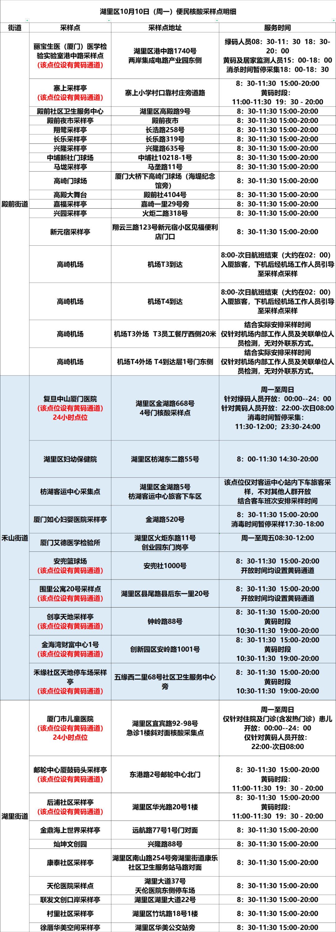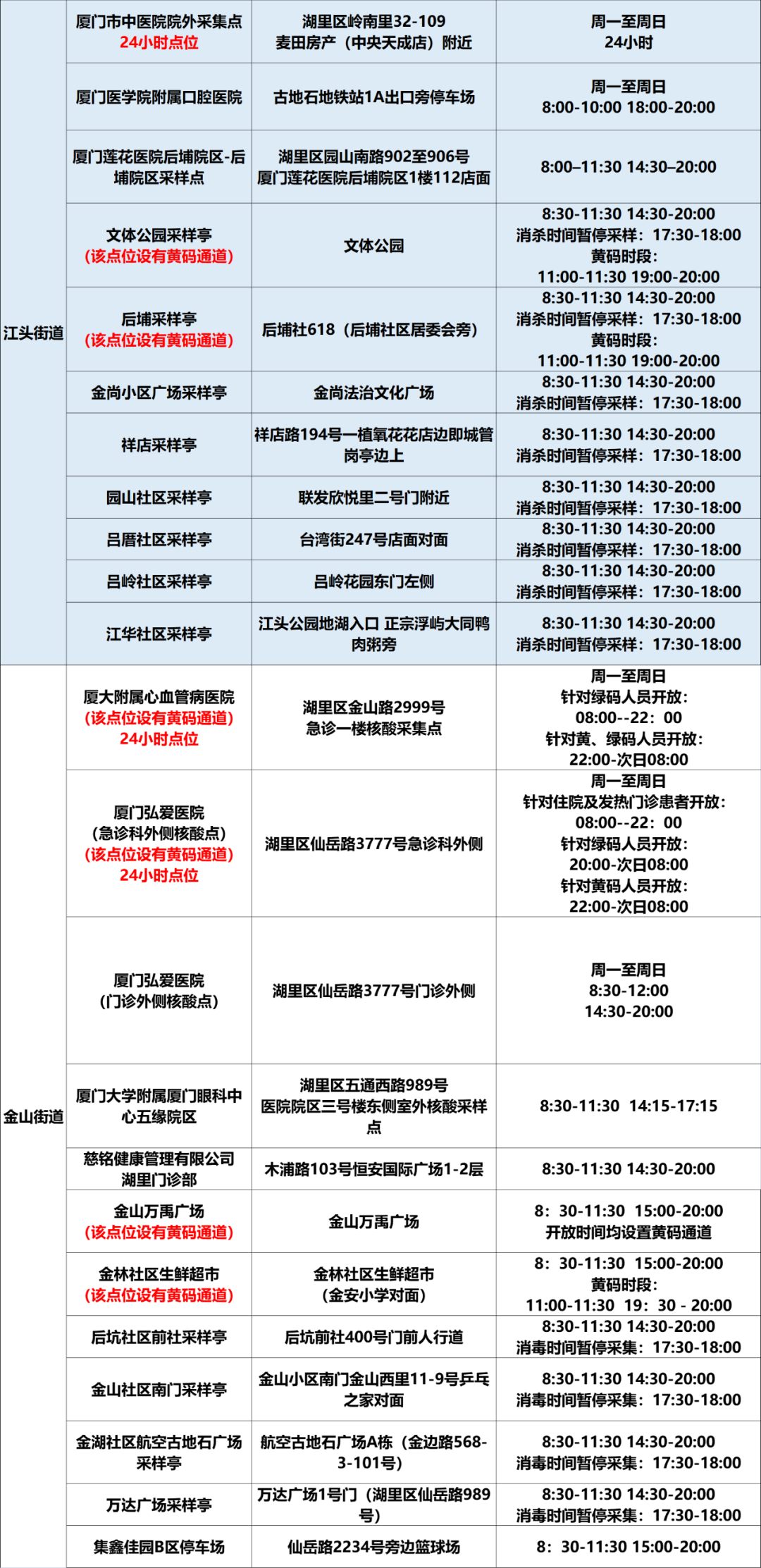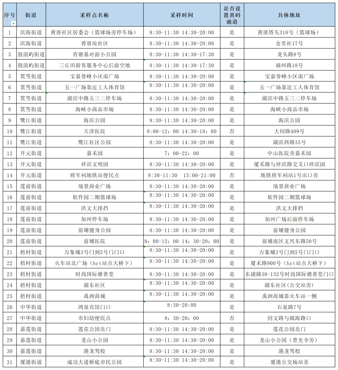 厦门核酸检测点6区汇总 厦门筼筜街道核酸检测点
