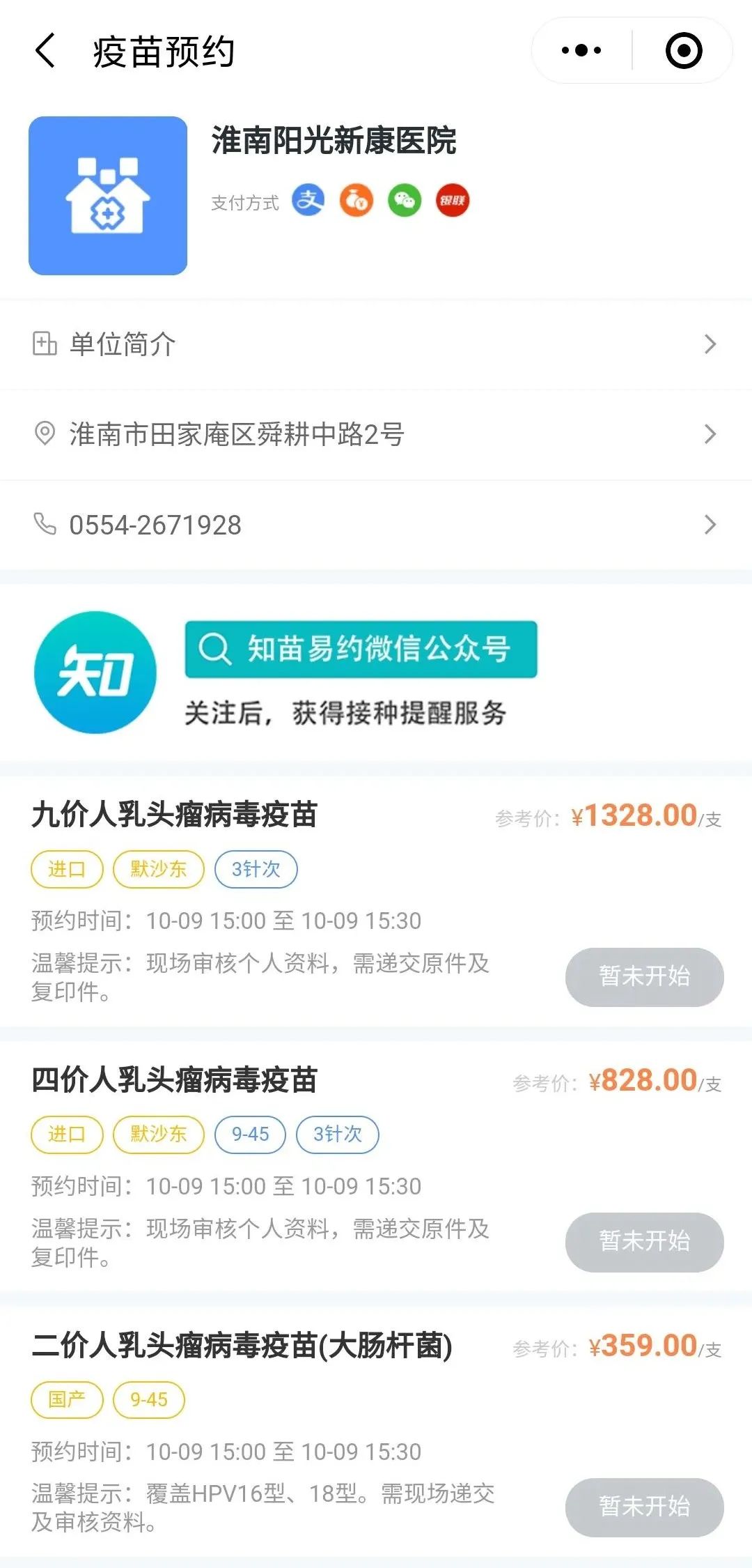 本次HPV疫苗预约时间是(10月9日)下午三点。