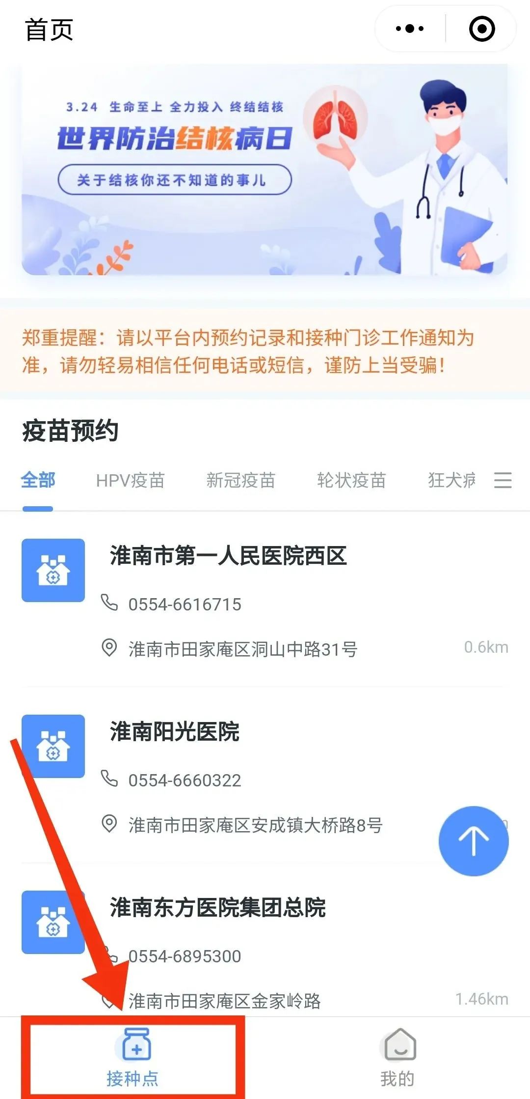 “田家庵发布”微信公众号是田家庵区唯一官方预约通道,通过其他任何非官方通道预约的,接种门诊都不予承认。
