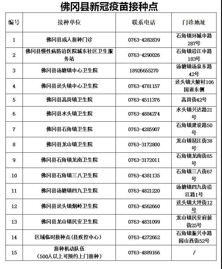 佛冈县新冠疫苗接种点(佛冈县新冠疫苗接种查询系统)