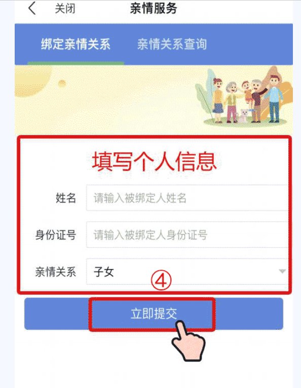 选择任一渠道的社会保障卡线上服务,在首页点击亲情服务-添加亲情账户-提交绑定。