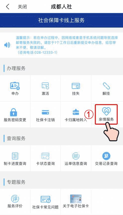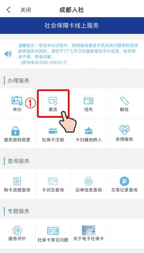 ②“成都市12333”微信公众号:便民服务-社会保障卡-社会保障卡线上服务;